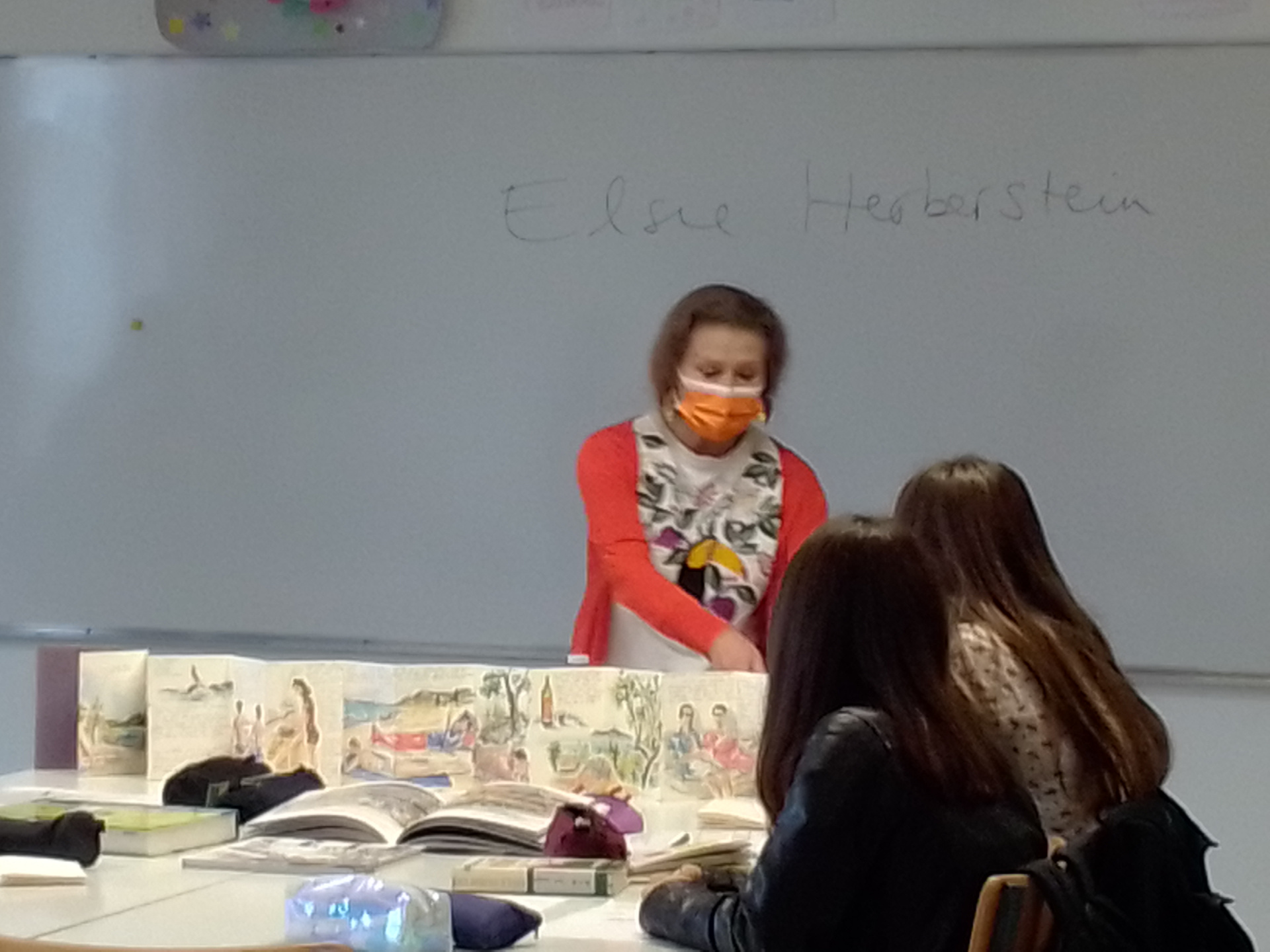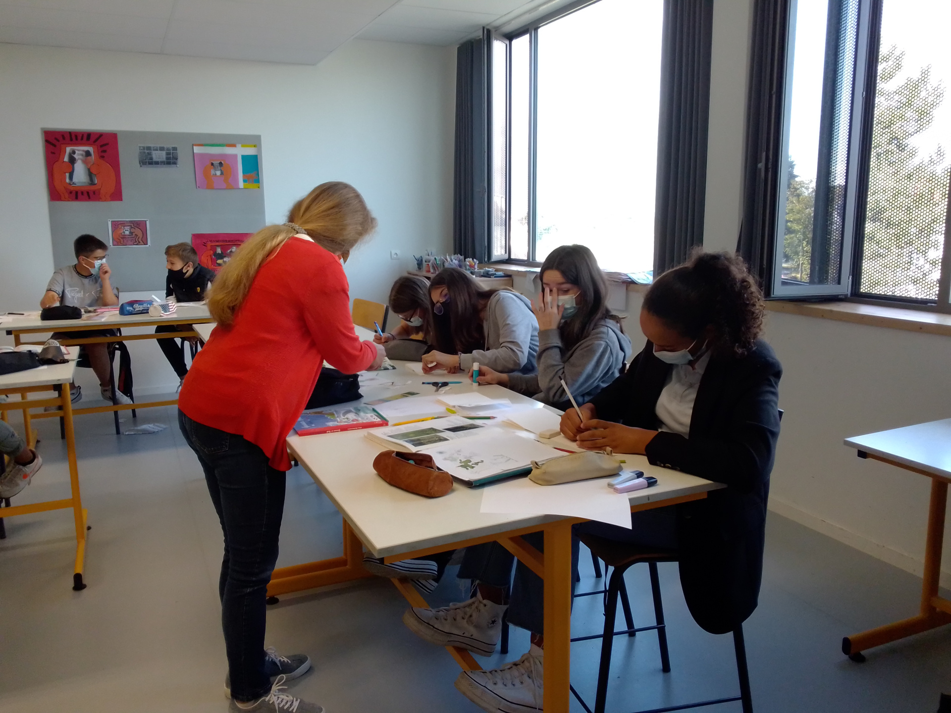 Jeudi 23 septembre, en partenariat avec la médiathèque de Bégard, le collège a accueilli une carnettiste, Elsie Herberstein. Après avoir présenté son travail aux élèves de cinquième 3, ils ont travaillé avec elle pendant toute la matinée pour créer leur propre carnet de voyage.