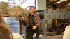 Alors que les 5è étaient avec les Hospitaliers en compagnie d’Yves Le Moullec, les 4re de la filière bilingue suivaient Yves Chesnot sur la route du lin. Le lin a été un aspect important de l’économie bretonne avant la Révolution française et, bien qu’elle ait connu le déclin par la suite, elle n’a jamais pris fin tout à fait. Le moulin du Palacret a participé à cette histoire à partir du XIXè siècle jusqu’en 1981. Yves Chesnot, membre actif de l’équipe des Amis du Palacret, connaît bien son histoire et celle des machines qui y sont hébergées. Il a expliqué et montré comment on arrive à un fil bon à tisser à partir d’une plante.