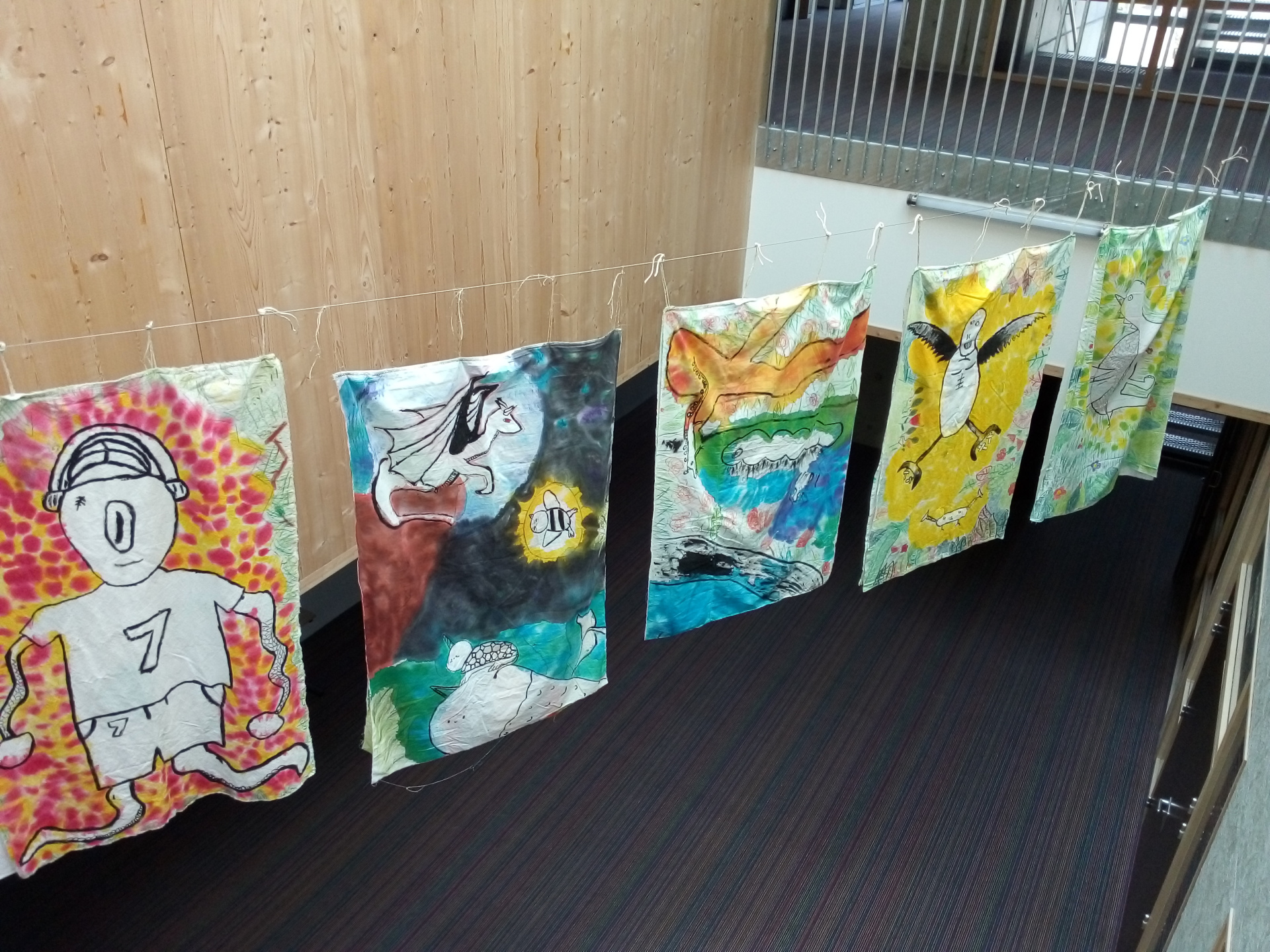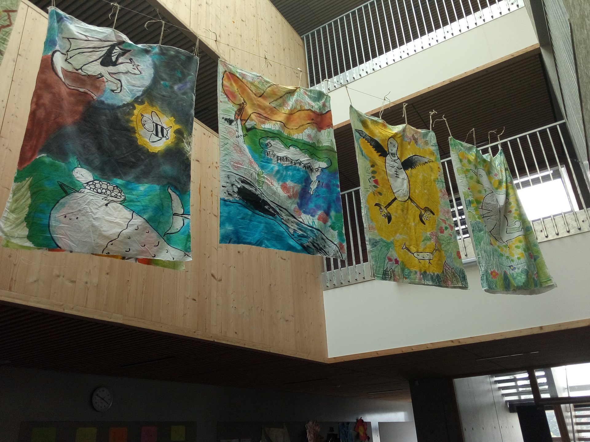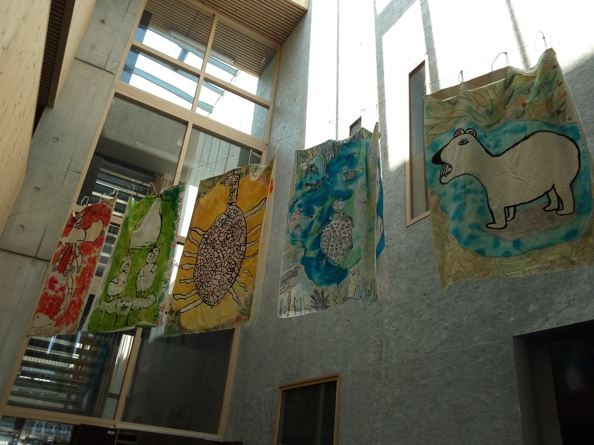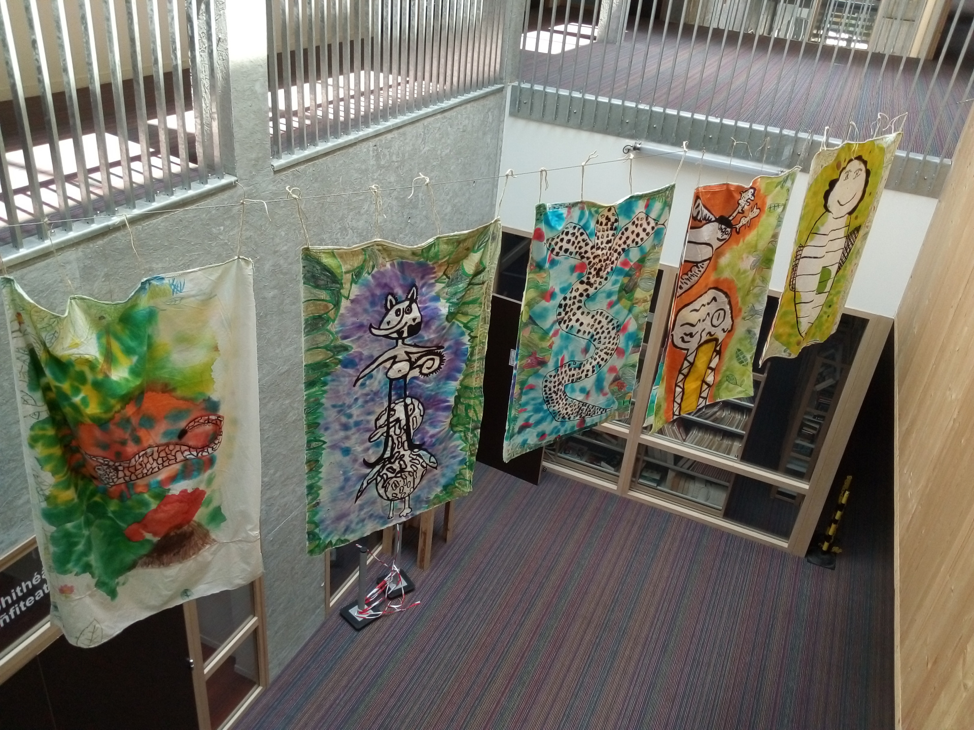 Après les ateliers d’écriture et de dessin, la représentation théâtrale suivie de l’échange avec les acteurs-trices et réalisatrices à « la Grande Ourse », les élèves ont pu récupérer leurs représentations sur tissus d’animaux capables de réparer la nature.