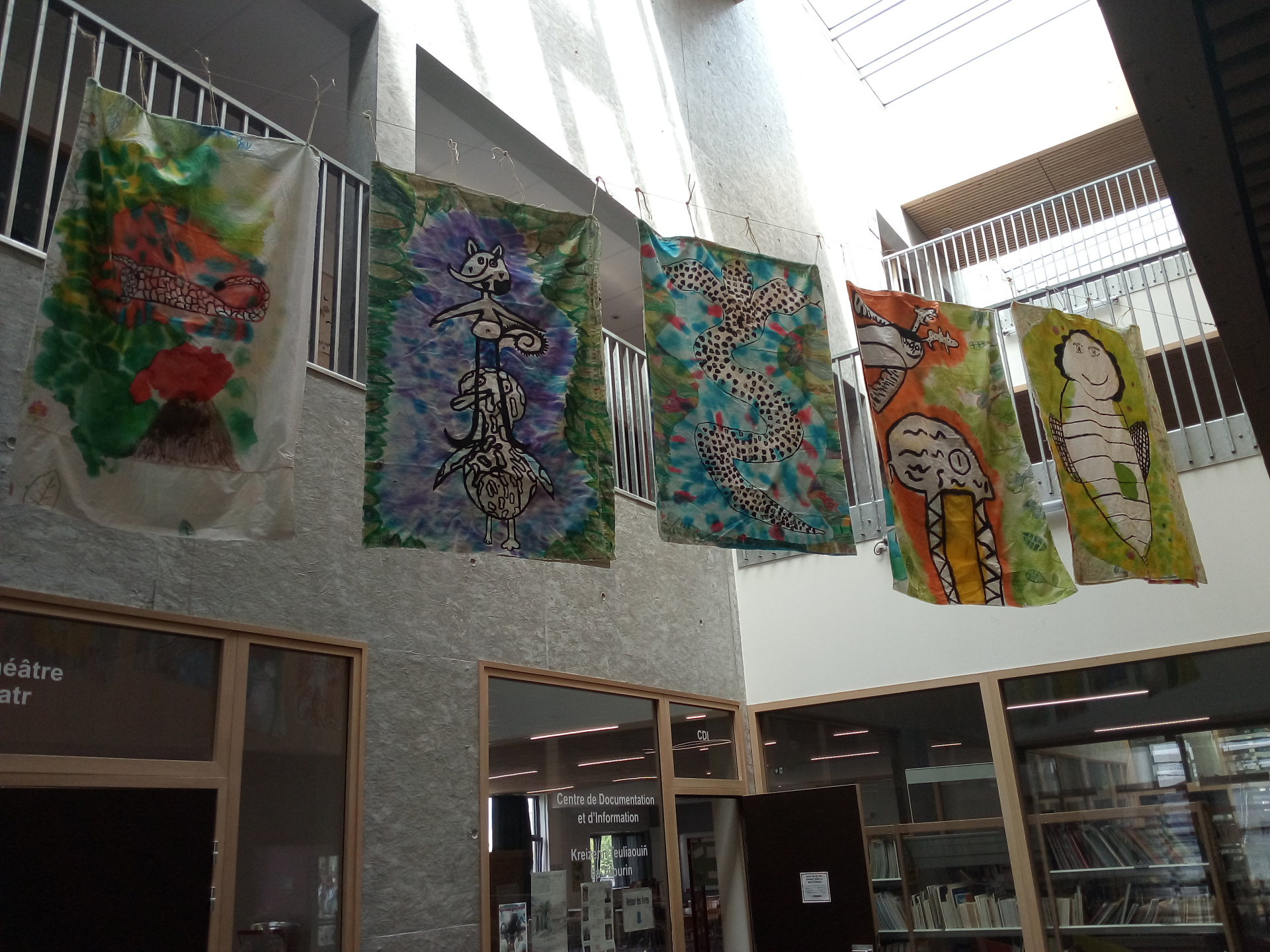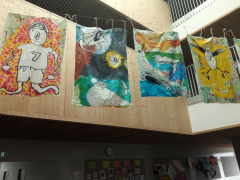 Les œuvres sont exposées dans les couloirs du collège.