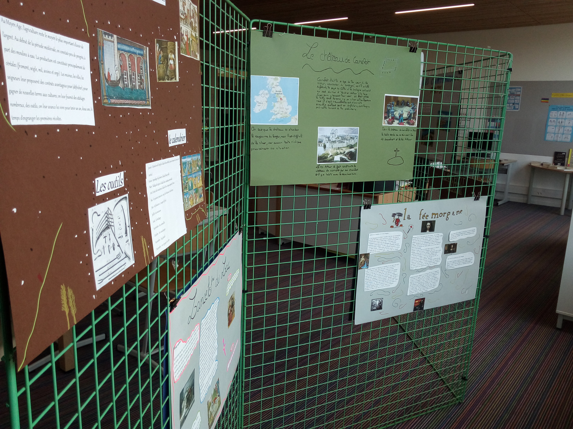 Les trois classes de cinquième de monsieur feuillet ont travaillé pendant plusieurs semaines sur des recherches au CDI et la fabrication d’une grande exposition sur le thème de la chevalerie, des mœurs du moyen-âges et des chevaliers de la Table ronde.