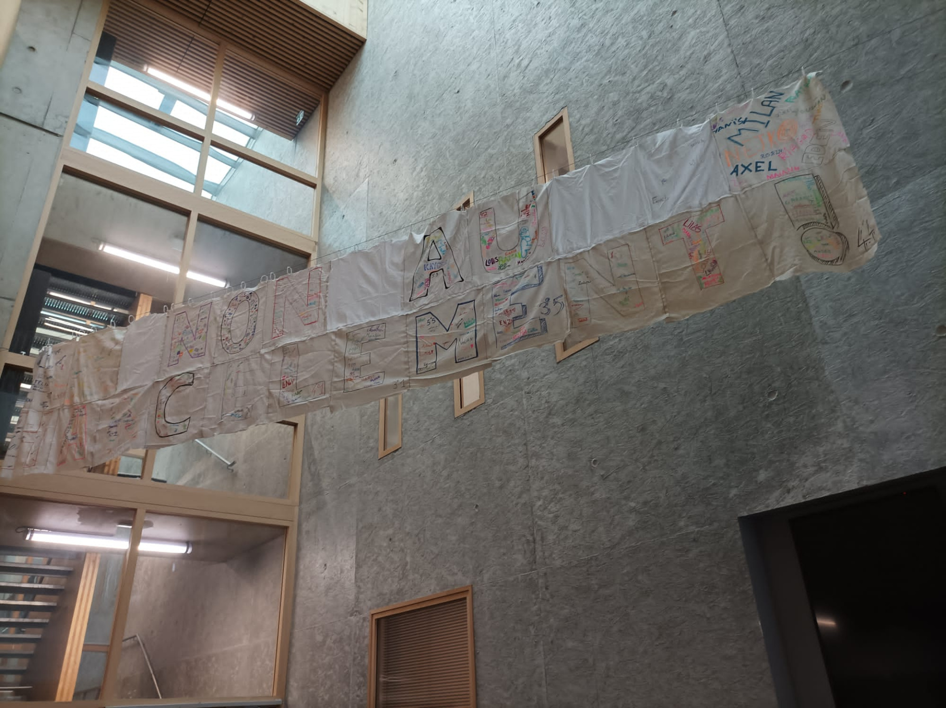 Une banderole « Non au Harcèlement » a été confectionnée puis les lettres ont été découpées et réparties par classe afin que les élèves la remplissent de leurs signatures.