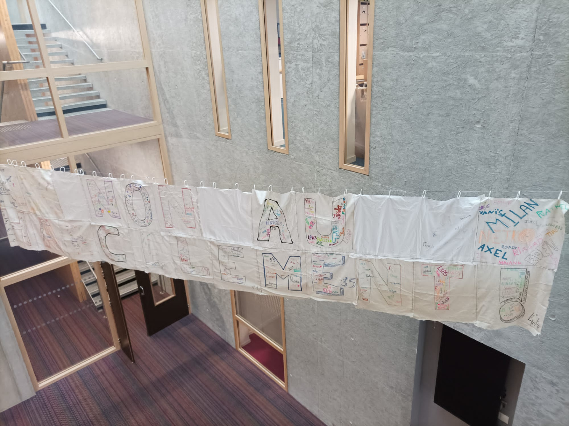 Le jeudi 9 novembre a lieu la Journée nationale de Lutte contre le Harcèlement.Cette année, notre collège a confectionné une banderole collective.