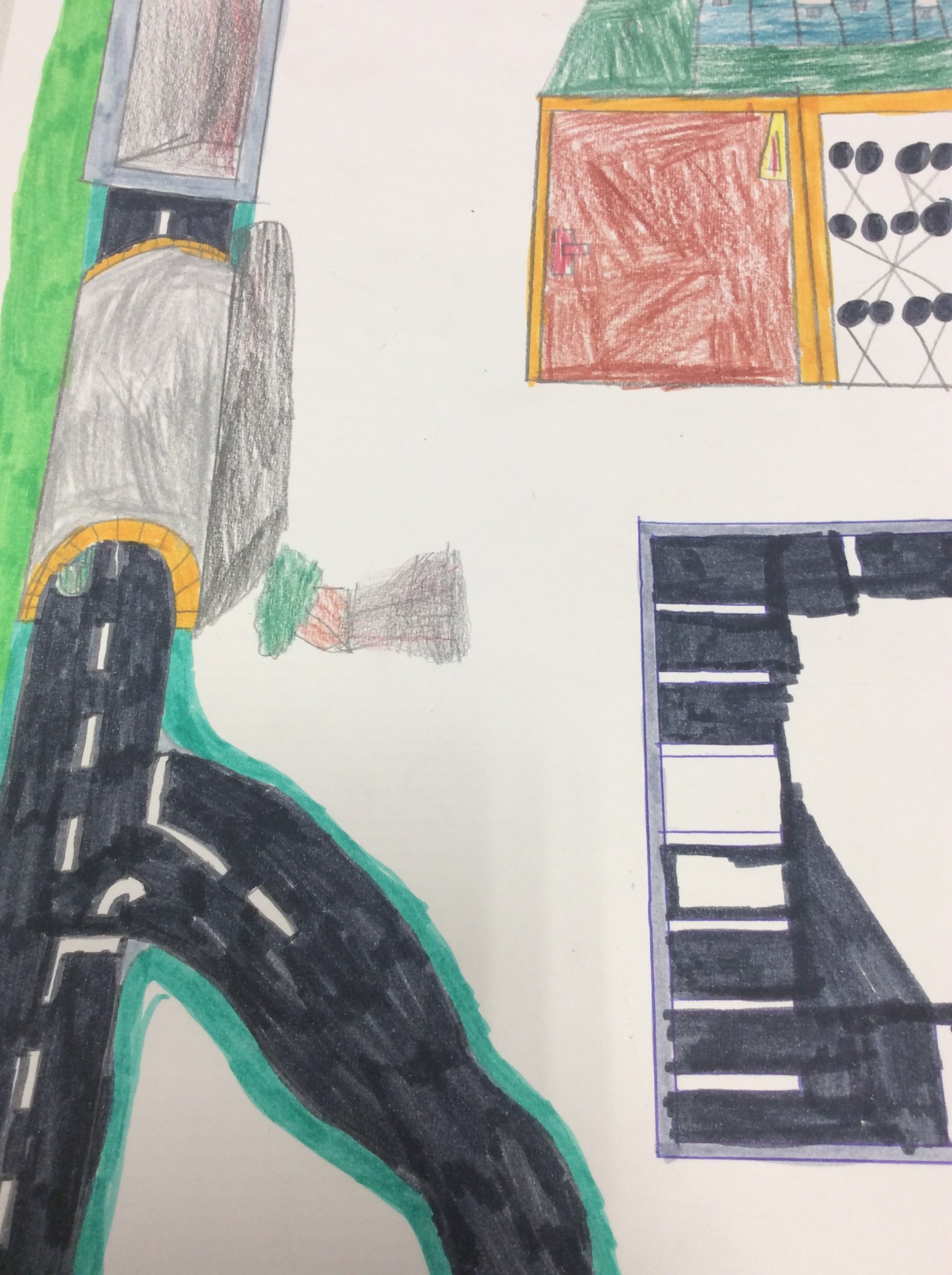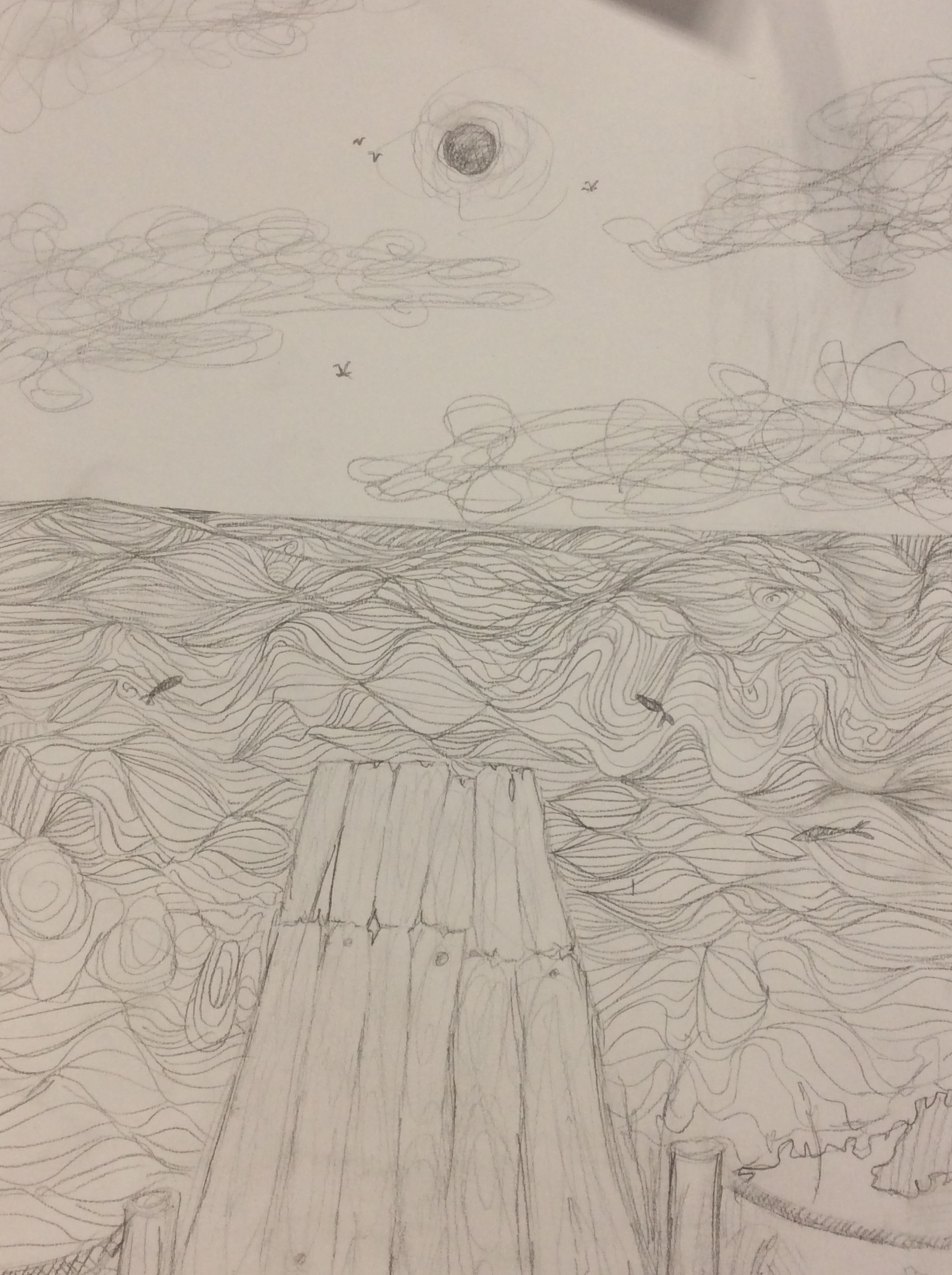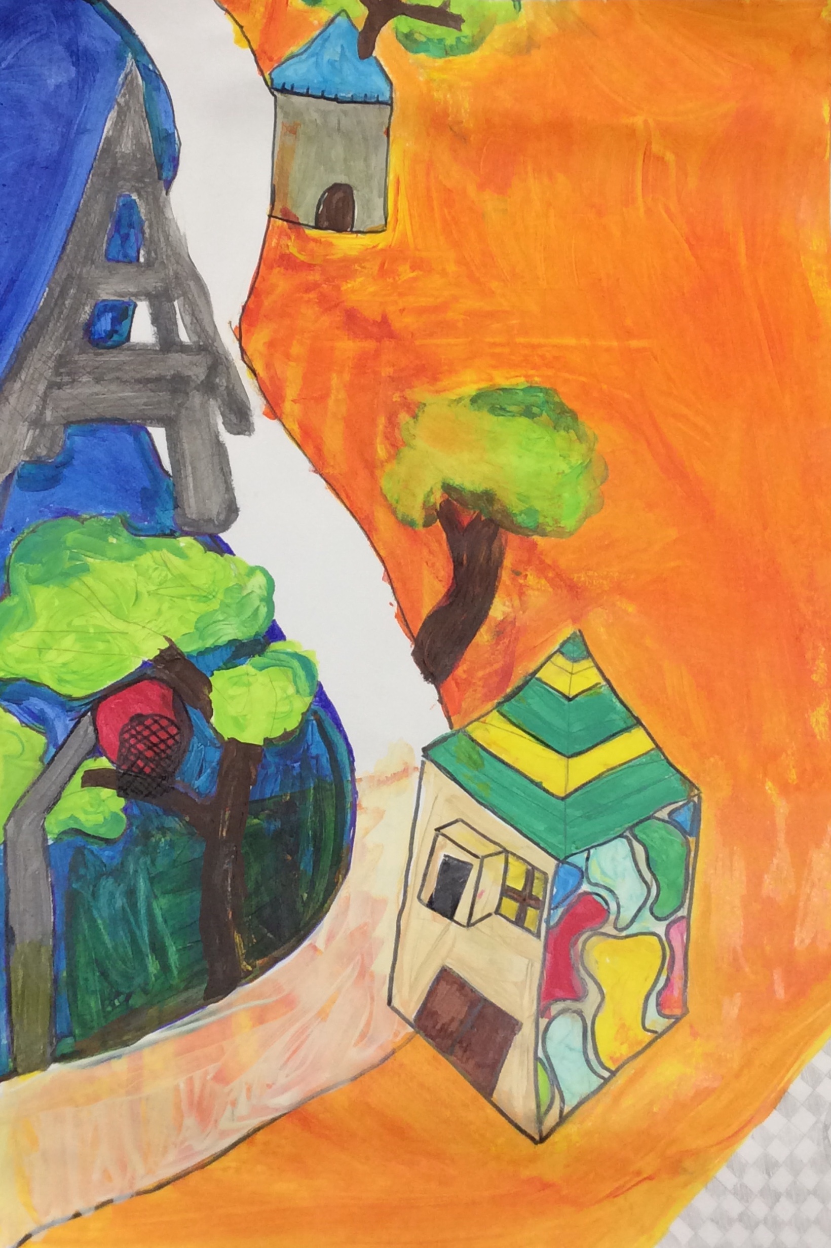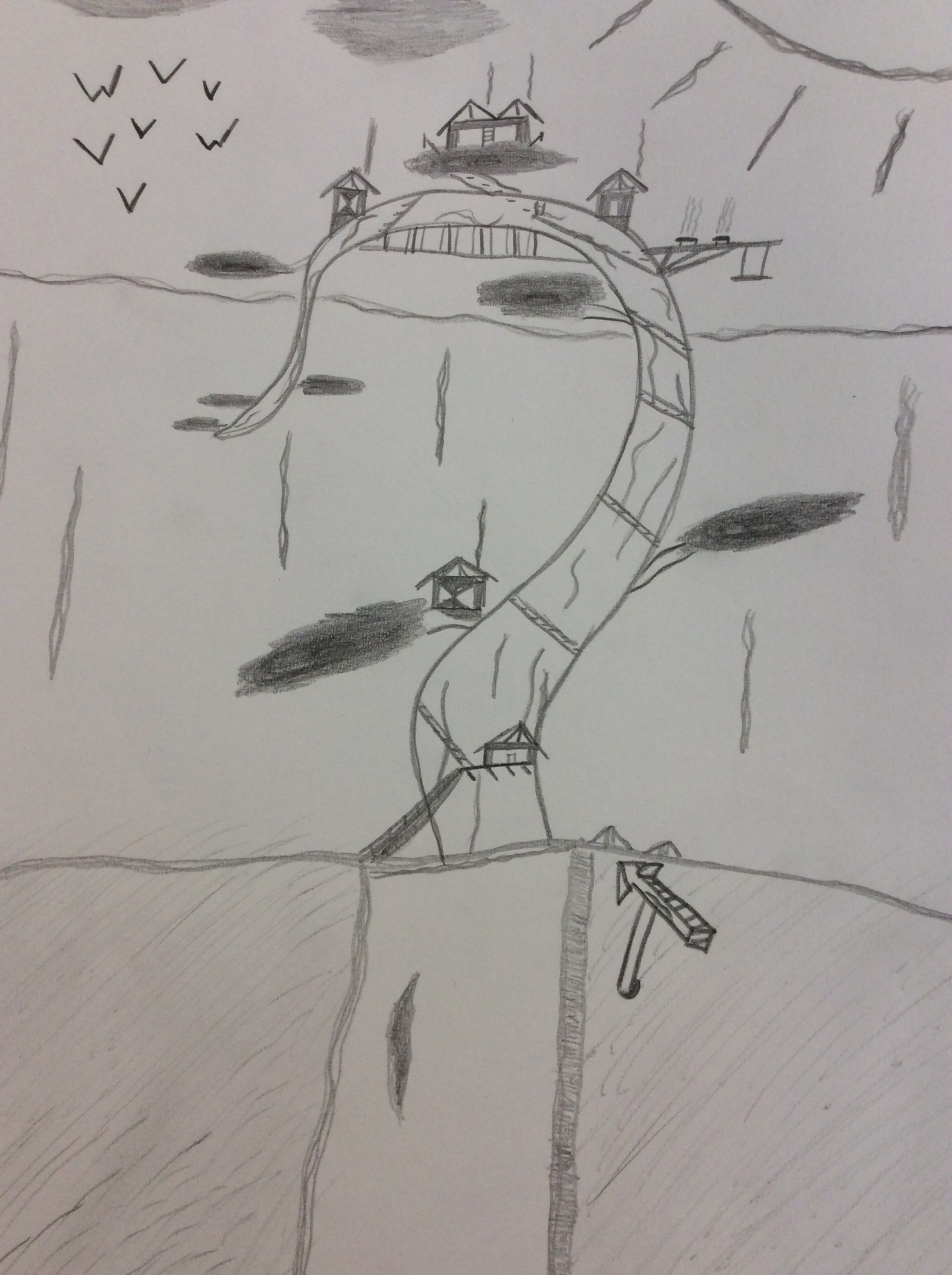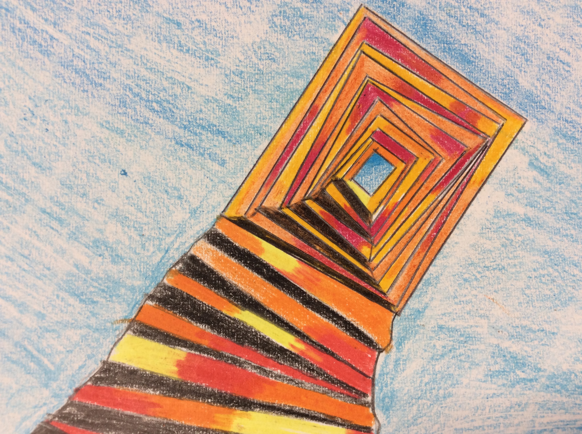 Après un travail de croquis de lignes dans la salle d’arts plastiques, les élèves devaient réaliser une production en s’inspirant de leurs croquis et invitant le spectateur à se promener.