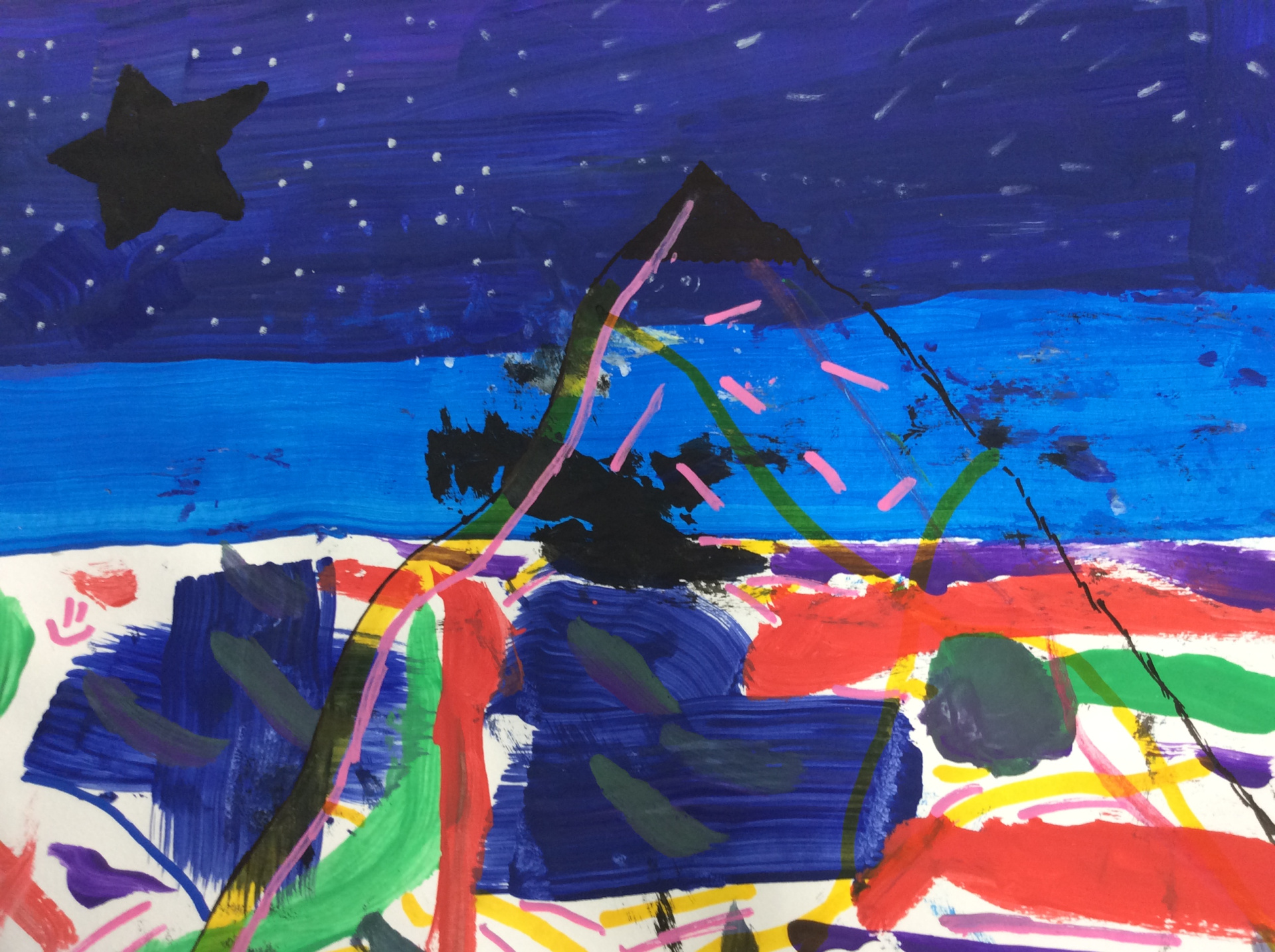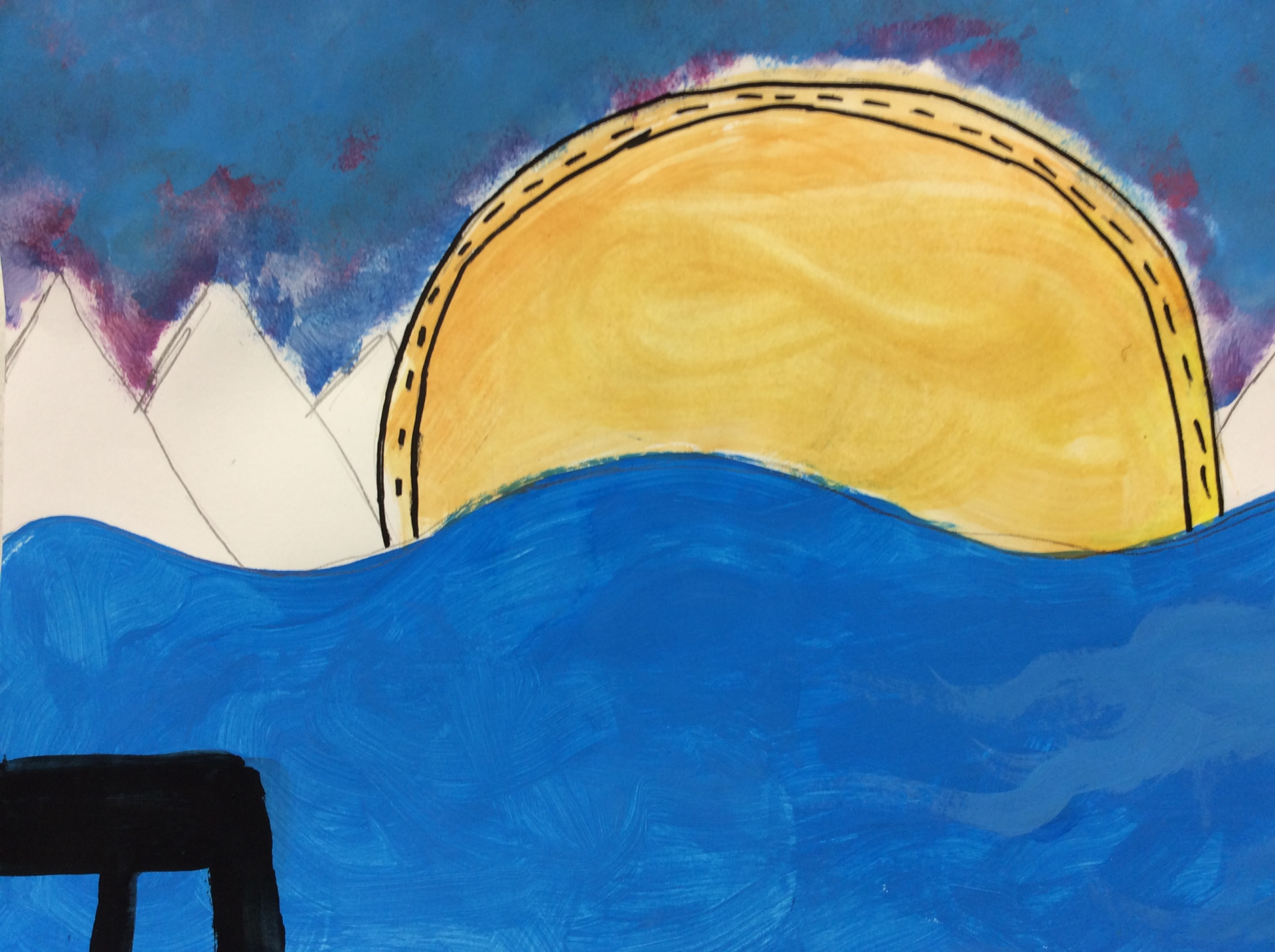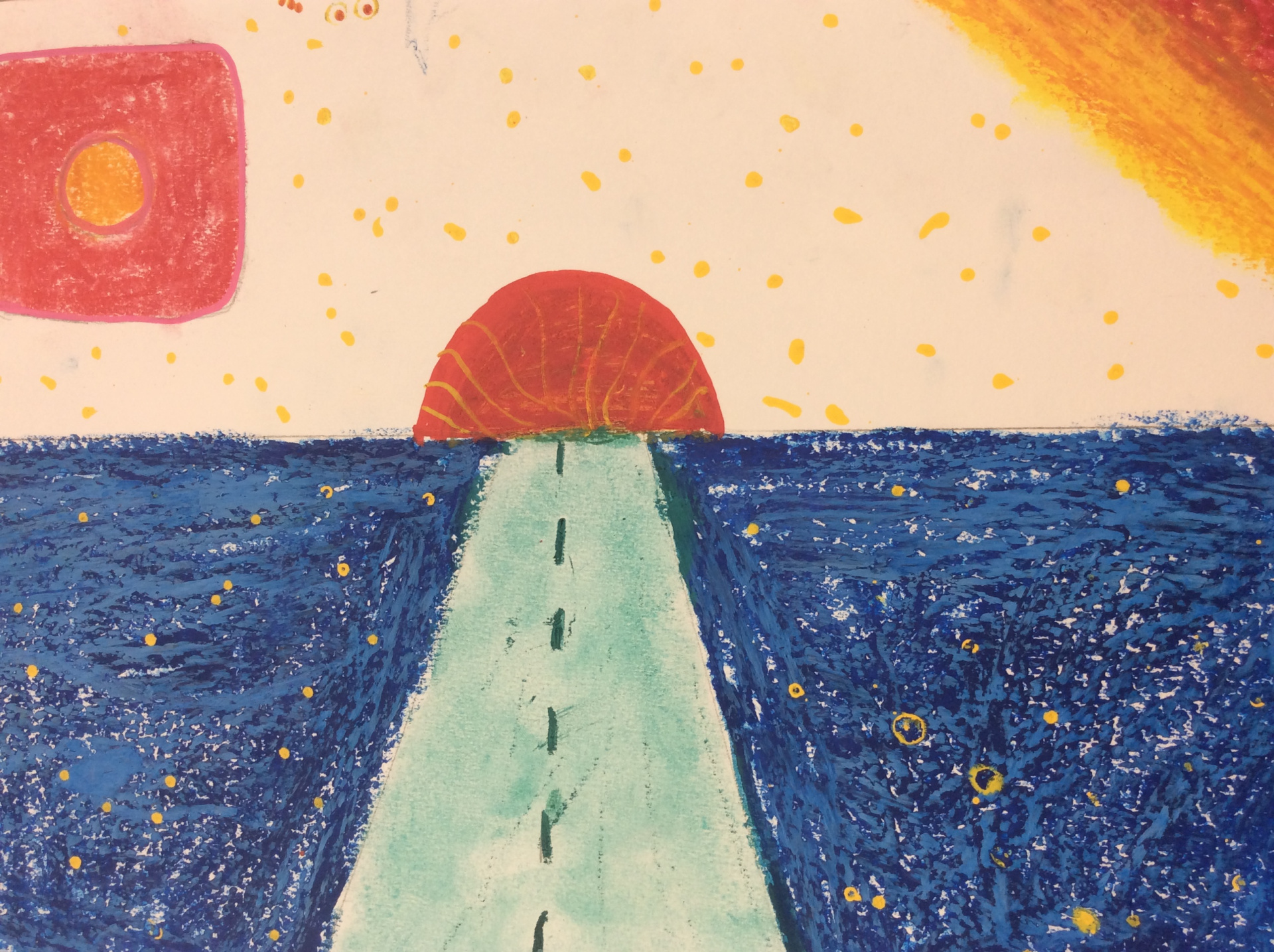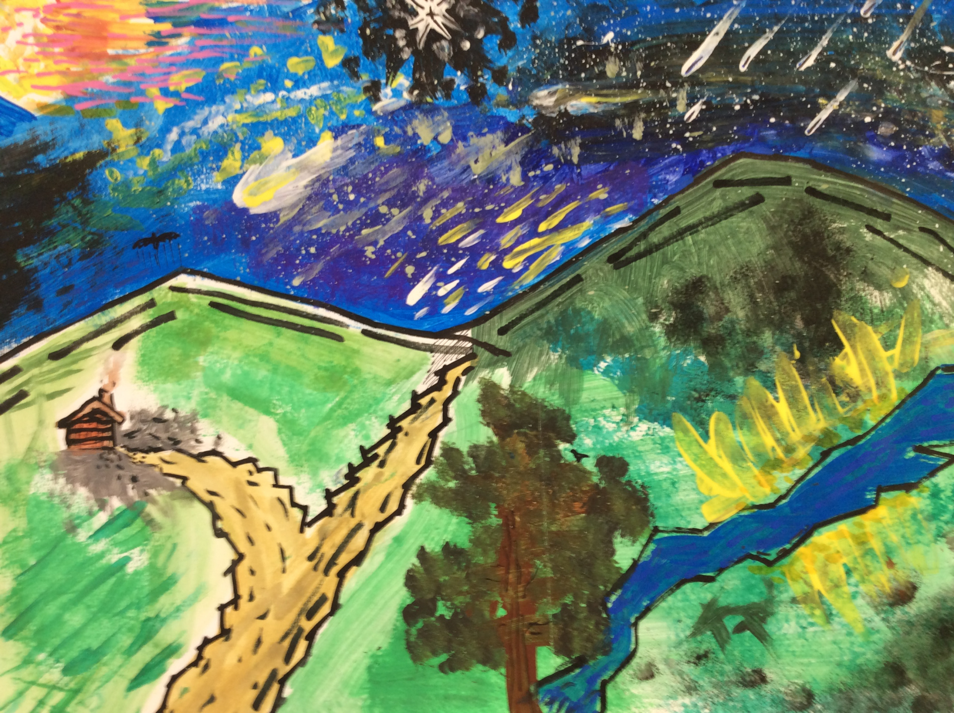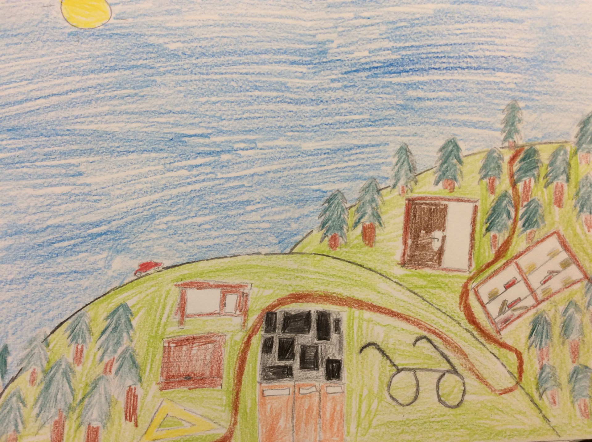 Après un travail de croquis de lignes dans la salle d’arts plastiques, les élèves devaient réaliser une production en s’inspirant de leurs croquis et invitant le spectateur à se promener.