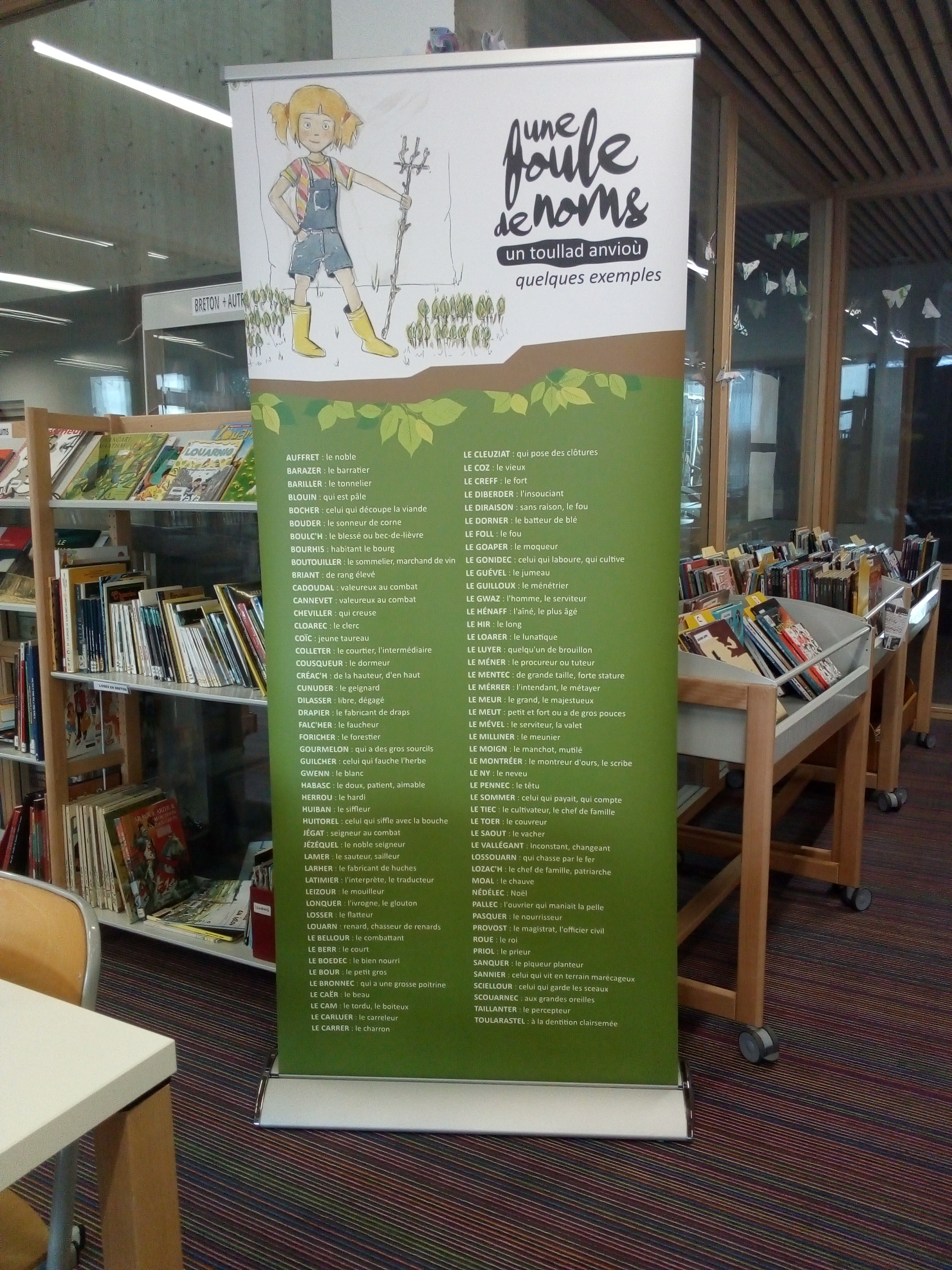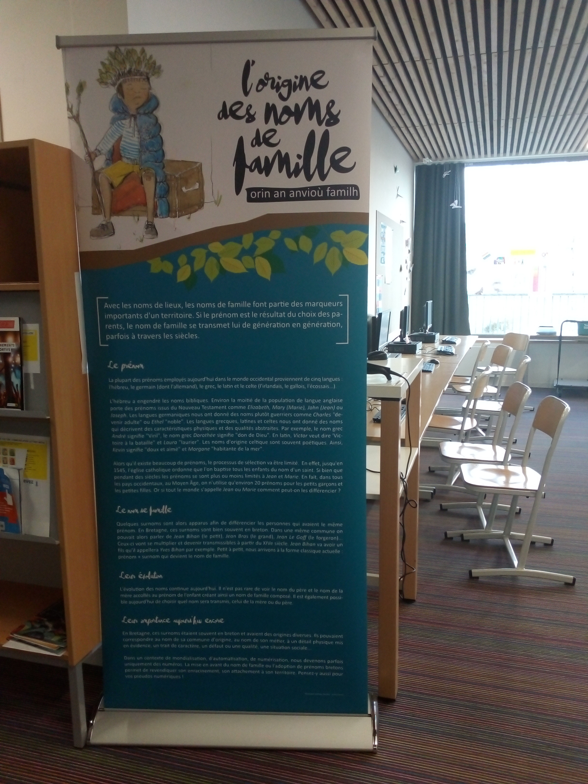 Nous avons accueilli au mois de février une exposition des éditions Kerjava sur l’origine des noms de famille en Bretagne.
