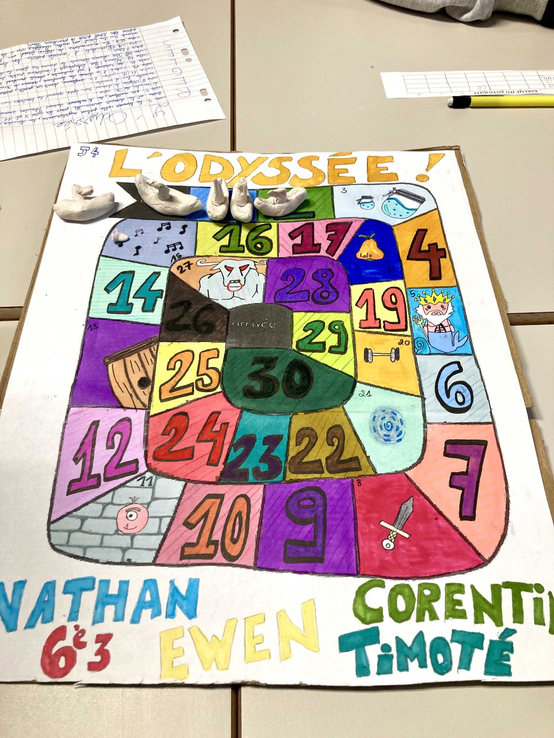 Des pions en terre et des plateaux illustrés avec brio ont fait le succès de certaines équipes, qui ont remporté les applaudissements et les félicitations de toute la classe.