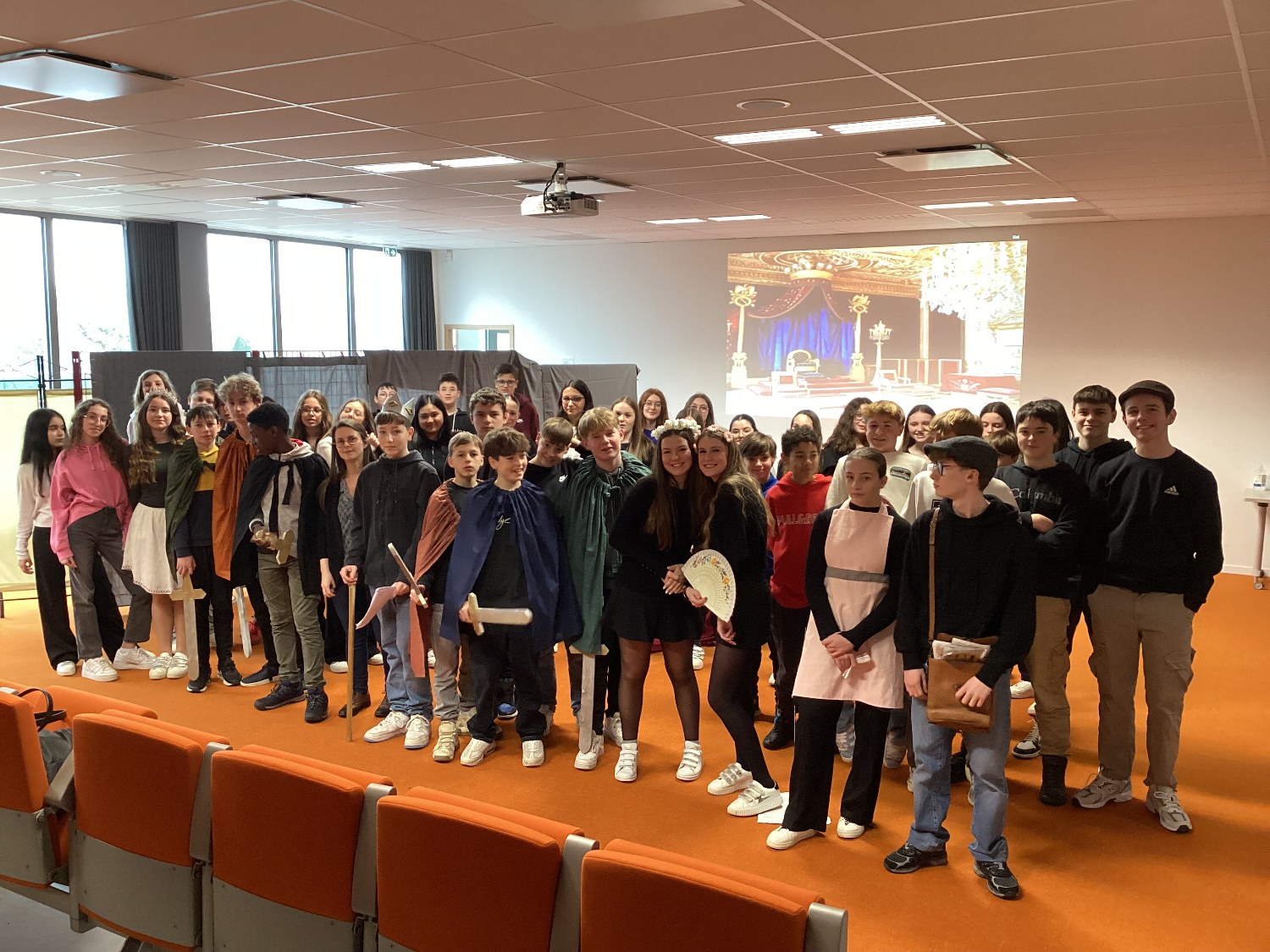 Dans le cadre d’une séquence sur Le Cid de Corneille, les élèves de 4e2 et 4e3 du collège François Clech de Bégard se sont mis dans la peau d’un metteur en scène. Après une réécriture du texte initial effectuée par leur professeur de français dans une version modernisée et en prose, les élèves ont imaginé les décors et costumes nécessaires à leur mise en scène. Par la suite, ils se sont mis dans la peau des personnages et ont, après de multiples entraînements, proposé à leurs camarades leur interprétation de l’œuvre de Corneille ! Les comédiens en herbe ont remporté un franc succès et expriment déjà la volonté de remonter sur les planches !
