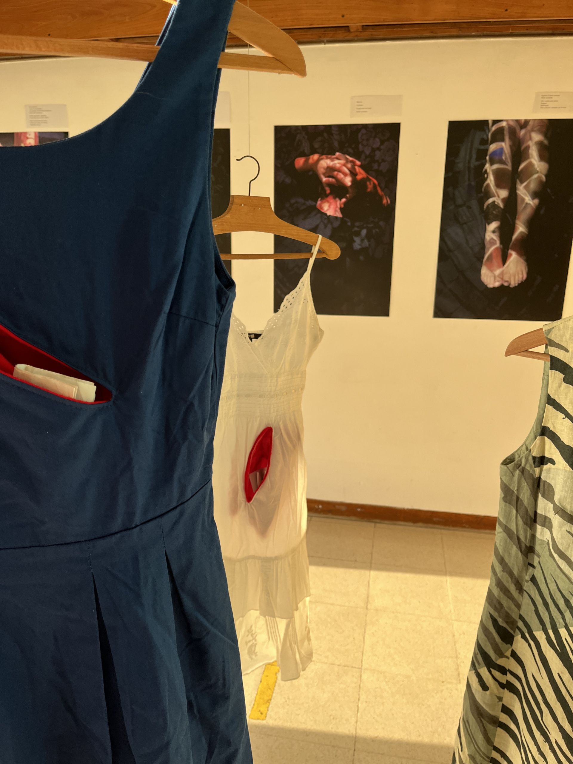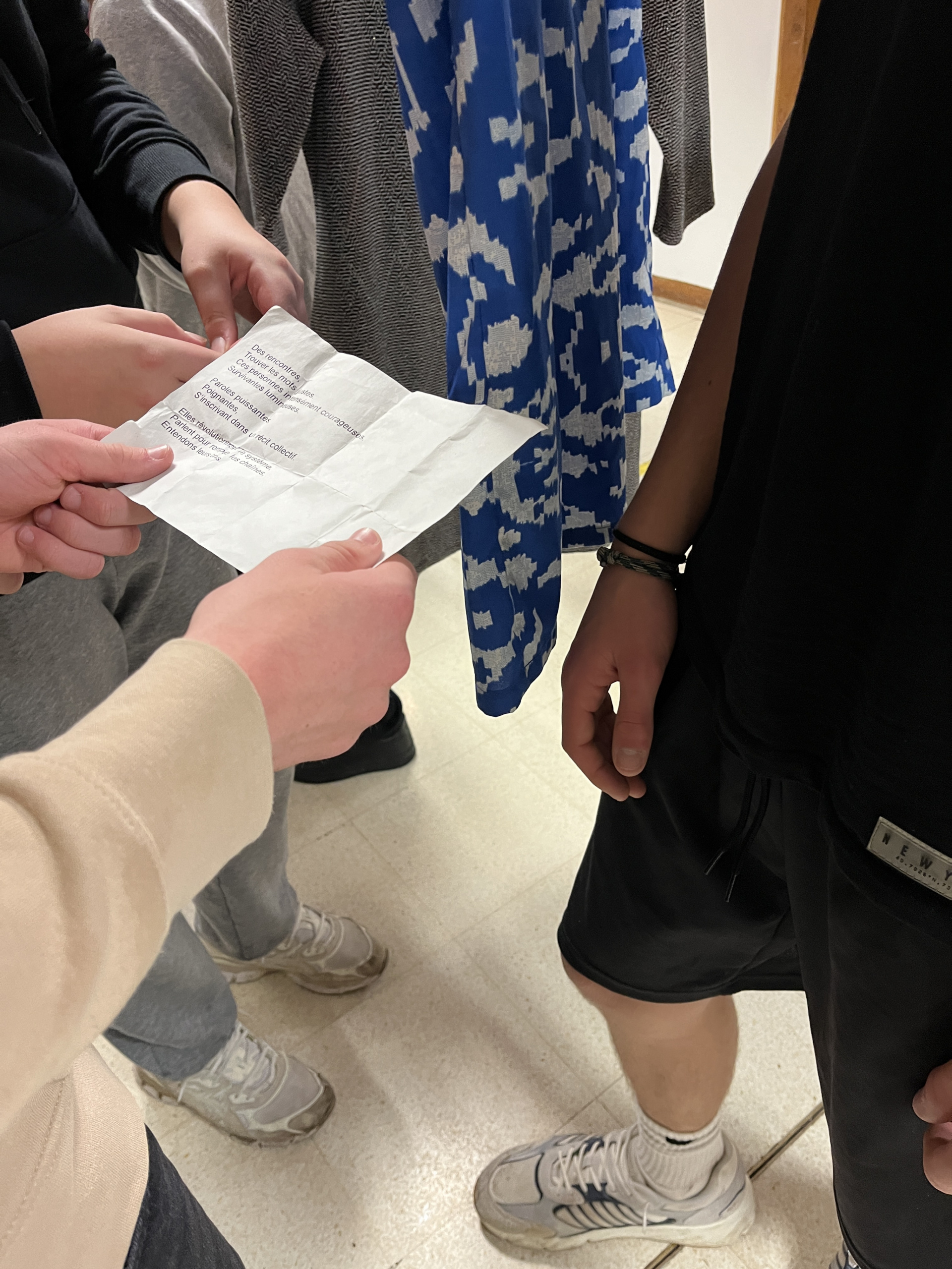 Ils ont pu déambuler dans le hall au milieu des robes suspendues, chacune contenant des textes symboliques dans des poches rouges, témoignent des violences subies. Les adolescents ont pu lire et partager autour de ces testes, avant d’aller assister à une projection de photos accompagnée d’une bande sonore de 30 minutes pour entendre les récits recueillis auprès de femmes accompagnées par les services sociaux. .