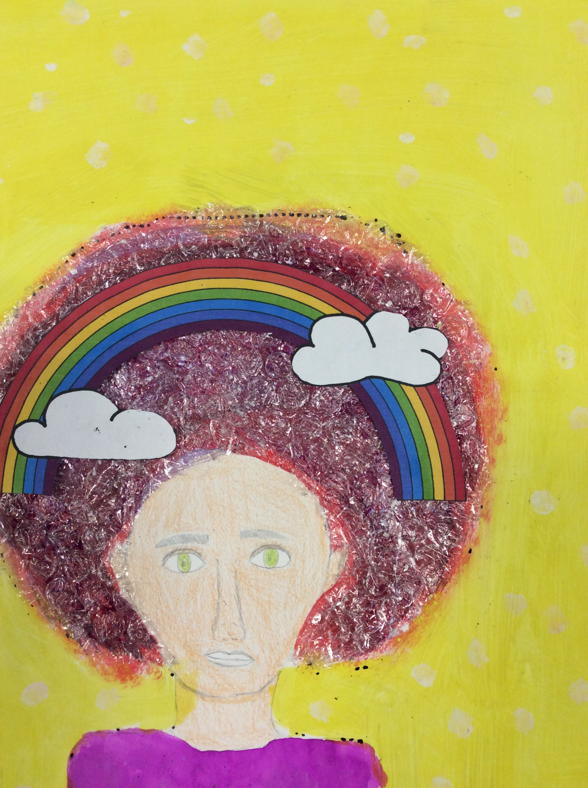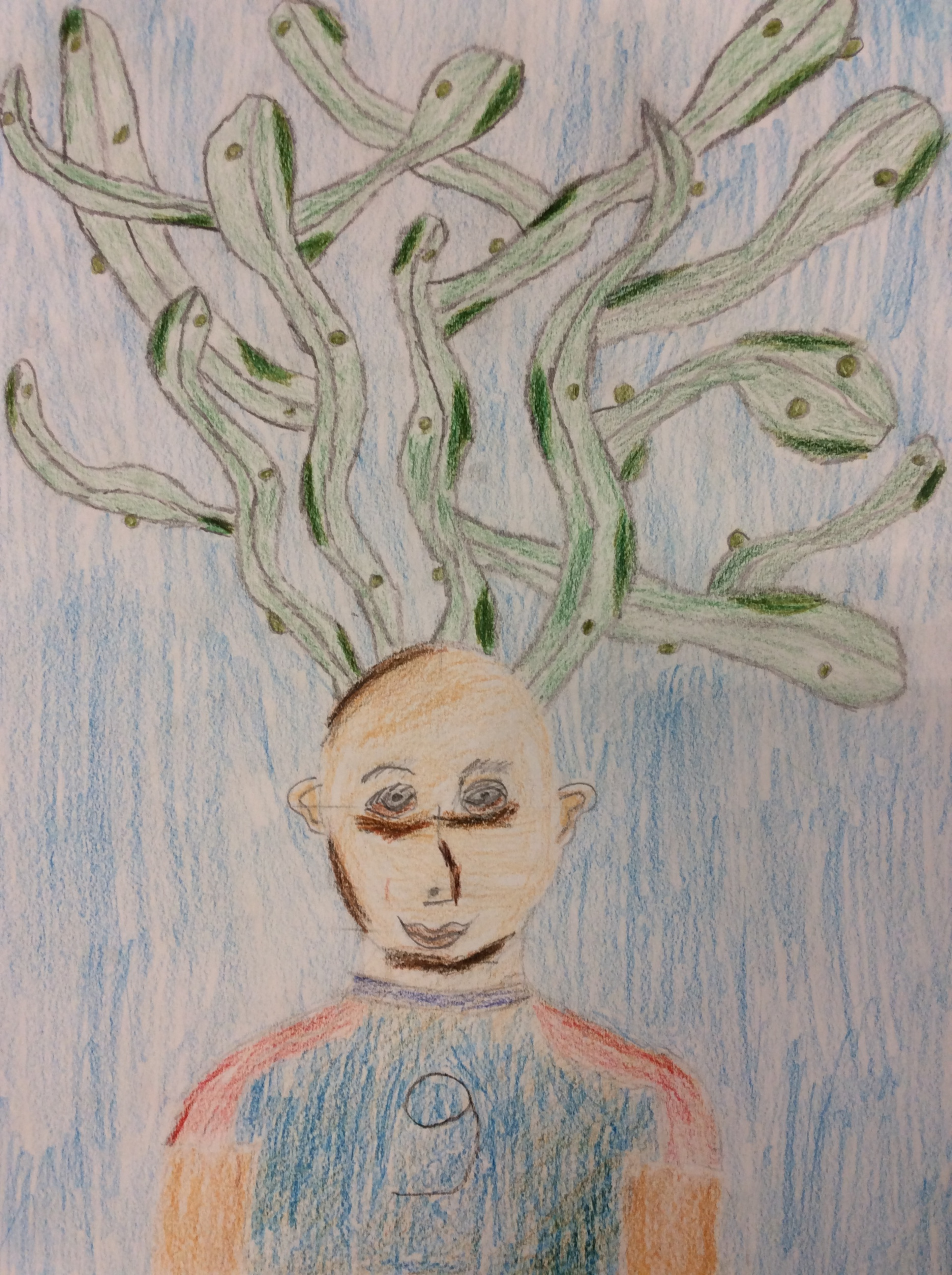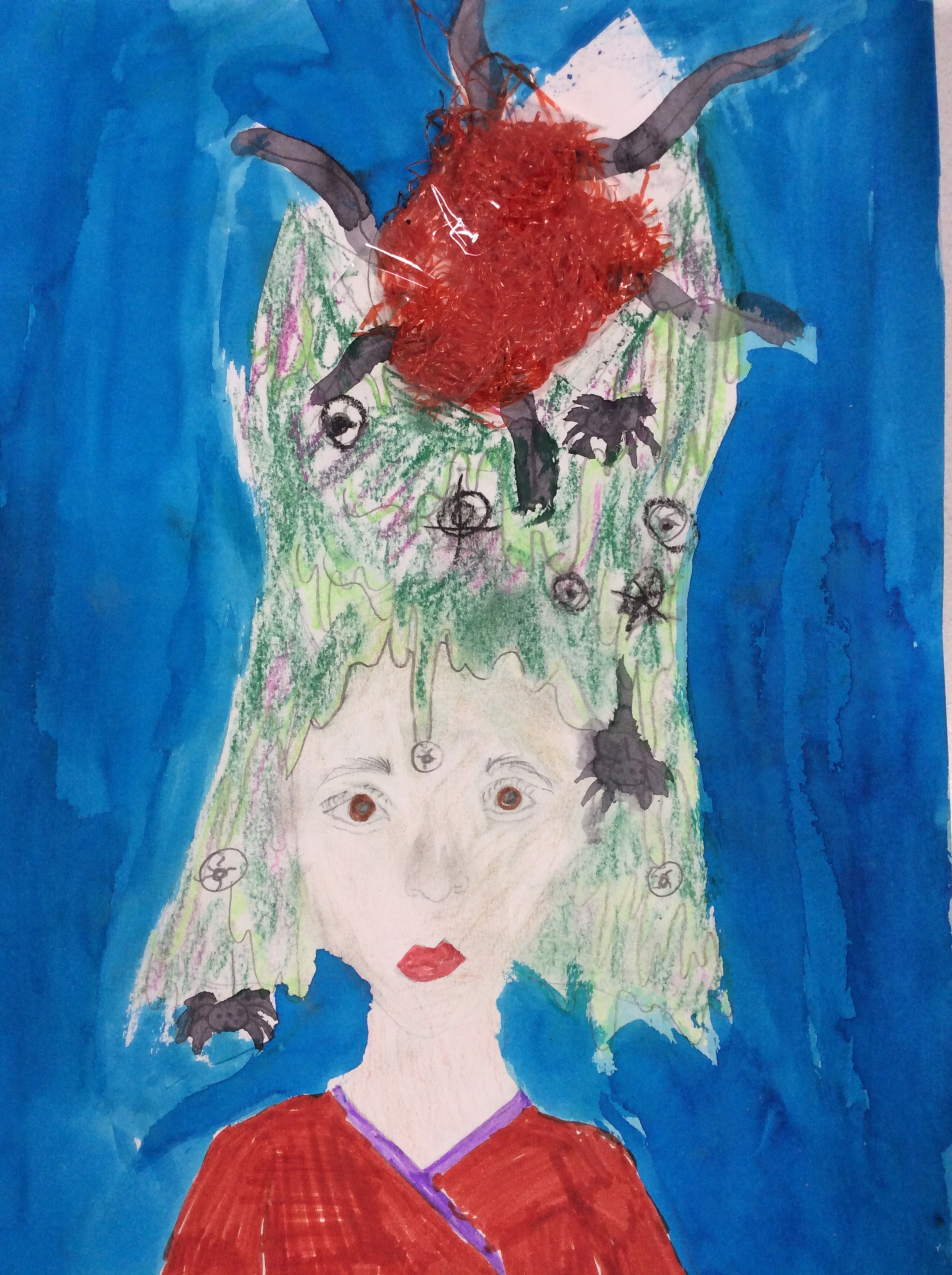 Les élèves de 6e sont heureux de vous présenter leurs productions. Ils ont dû représenter leur client, imaginer une coiffure complétement folle sans cheveu puis réaliser un fond qui fasse ressortir leur client et sa coiffure.