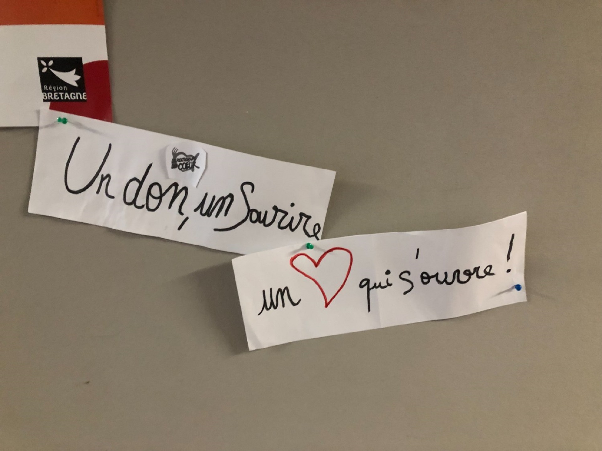 Les élèves sont invités à déposer une ou plusieurs denrées alimentaires dans les caddies prévus à cet effet à l’entrée du bâtiment. Les dons (denrées non périssables, produits d’hygiène et articles pour bébé) seront ensuite collectés par les bénévoles puis distribués aux bénéficiaires des restos du cœur de Guingamp.