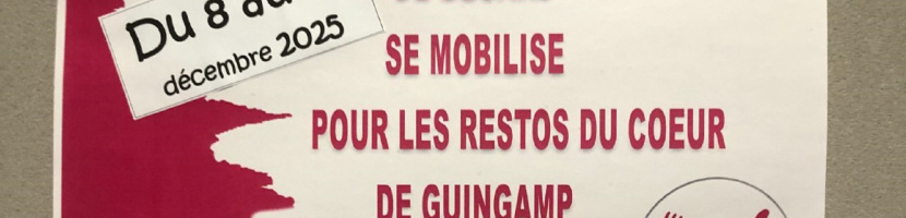 Du 8 au 12 décembre 2025, le collège François Clech de Bégard organise une grande action de sensibilisation au profit des Restos du Coeur de Guingamp. Les élèves sont invités à déposer une ou plusieurs denrées alimentaires dans les caddies prévus à cet effet à l’entrée du bâtiment. Les dons (…)